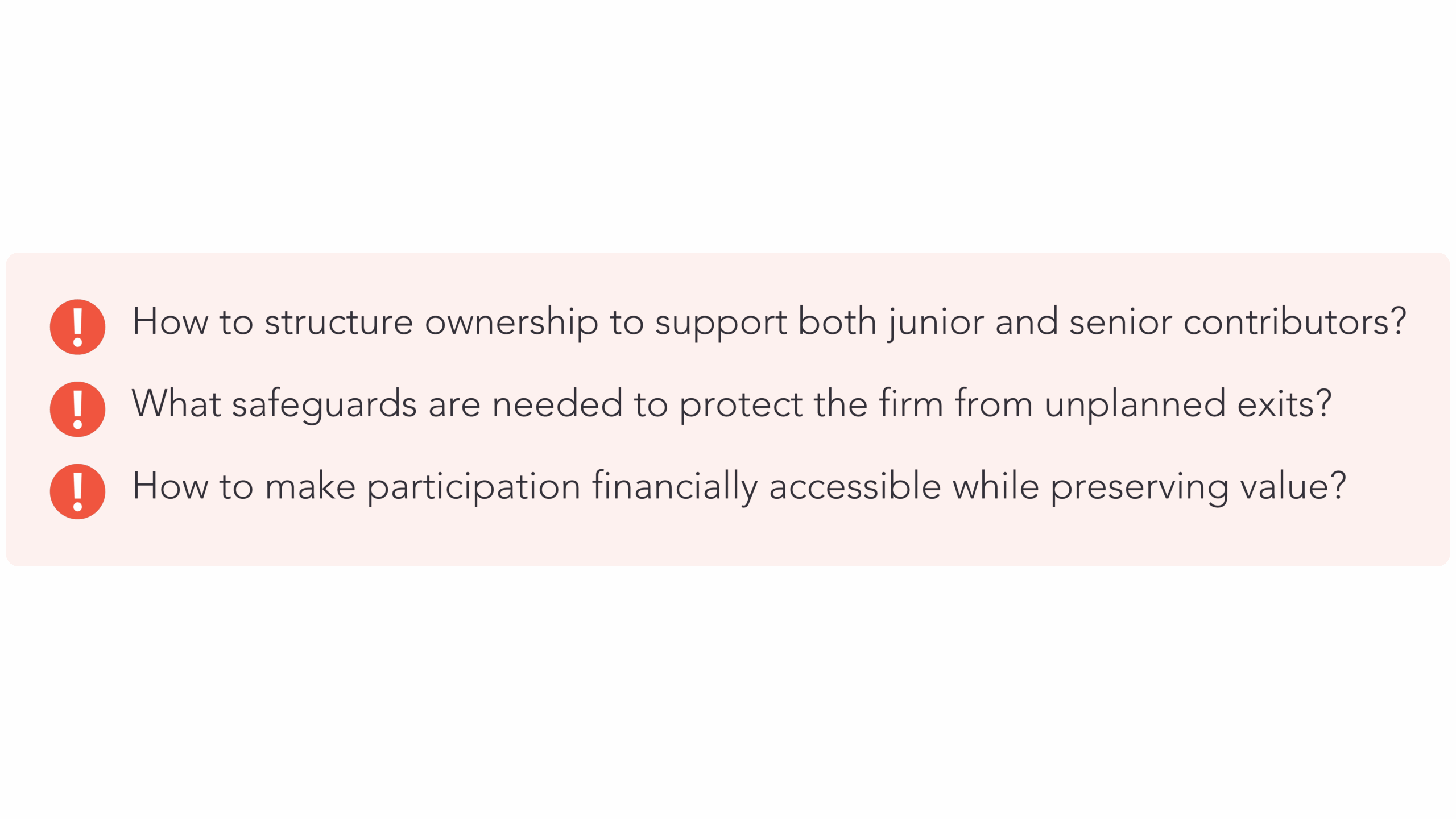 • Making ownership accessible without compromising firm stability