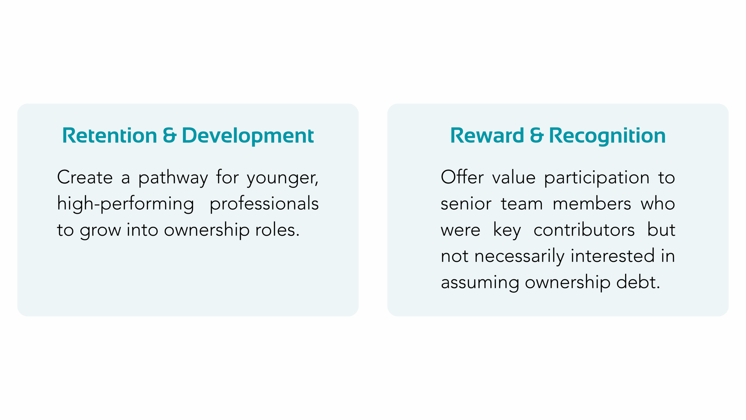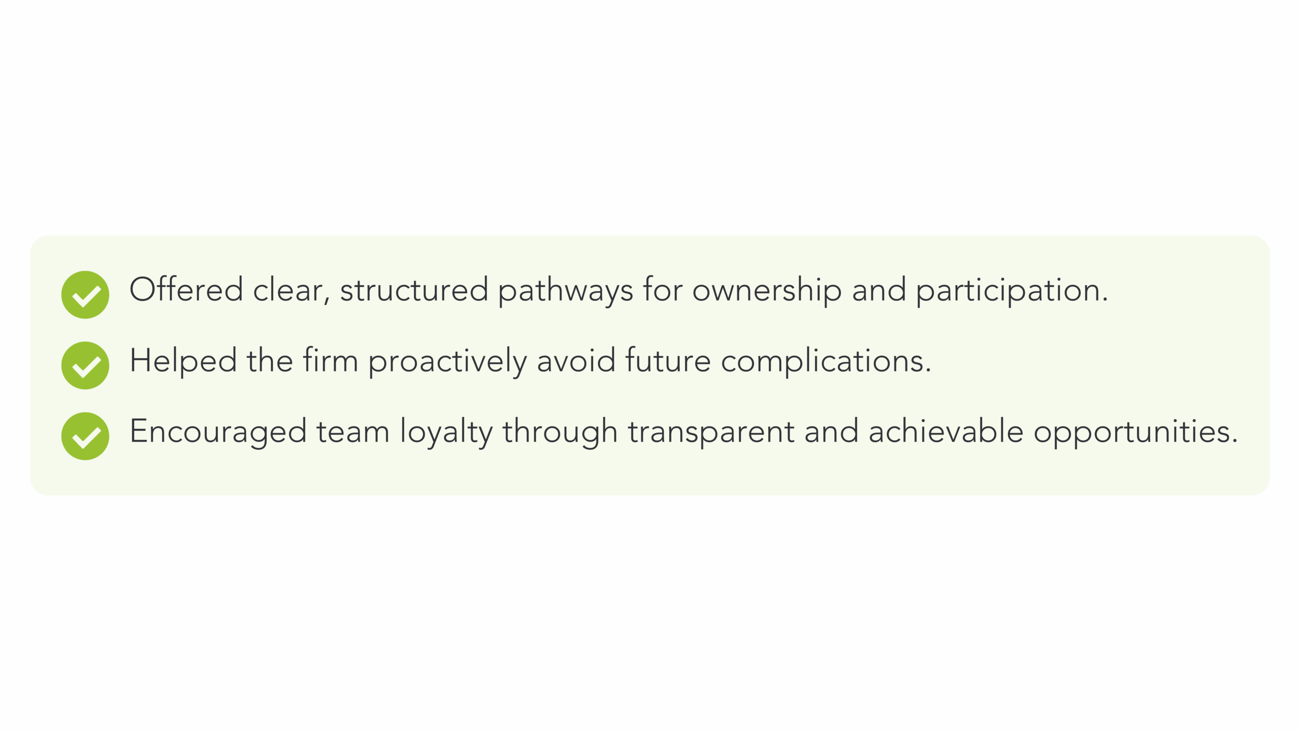 The owner knew that opening the door to ownership could be transformative, but it also carried risks. The firm wanted to reward and retain high performers without compromising financial stability or creating future complications.