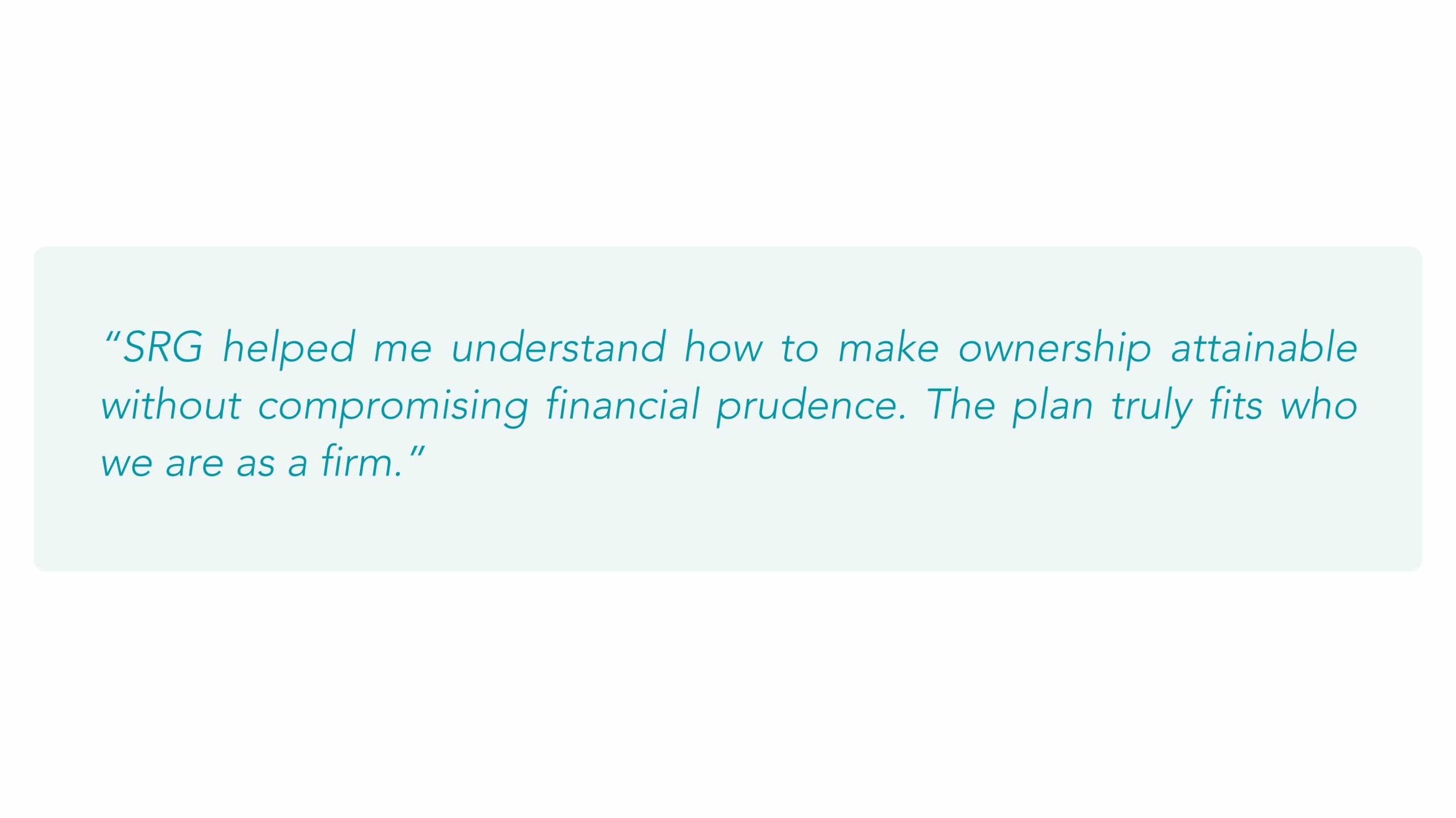 One of Brian’s early concerns was how complex and intimidating the process might be. SRG’s structured, hands-on approach quickly alleviated those fears. SRG coordinated directly with the firm’s tax advisor, ensuring alignment at every stage. They clearly explained each option, its implications, and its benefits, translating technical and legal details into actionable insights.